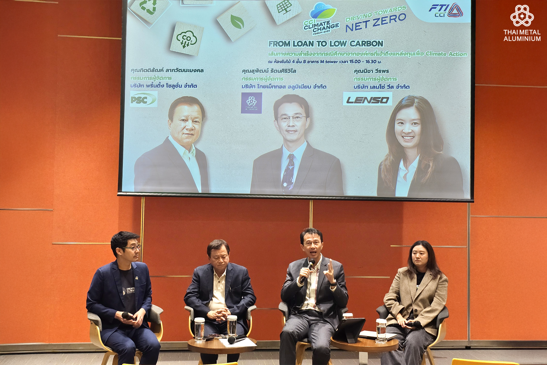 Home Blog News Thai Metal Aluminium Co., Ltd. Participates in Climate Change Forum 2025 Thai Metal Aluminium Co., Ltd. Participates in Climate Change Forum 2025 News | 17 September 2025 Thai Metal Aluminium Co., Ltd. joined the Climate Change Forum 2025, organized by the Thailand Climate Change Institute, Federation of Thai Industries, on September 15, 2025, at M Tower. On this occasion, Mr. Supat Ratanasirivilai, Managing Director, was honored as a guest speaker in the session “From Loan to Low Carbon.” He shared insights and real experiences in driving the transition towards a low-carbon business, along with practical approaches in environmental management, Carbon Footprint of Organization (CFO) and Carbon Footprint of Product (CFP) certification, and the development of THAI METAL GREEN BILLET — an eco-friendly aluminium innovation that reduces carbon emissions and enhances sustainability across the industry value chain. This participation highlights Thai Metal’s strong commitment to advancing the green economy and fostering sustainability in Thailand, in line with the company’s mission to uphold social and environmental responsibility. share Other News & Articles Thai Metal Aluminum Celebrates Four Decades as a Leader in the Comprehensive Aluminum Industry, Committed to Sustainability and Environmental Friendliness United Nations (UN) & United Nations Industrial Development Organization (UNIDO) visit Thai Metal Aluminium Special lecture on Carbon Footprint by Mr. Supat Ratanasirivilai at The 10TH Metallurgy Forum Scholarship for Thai Metal Aluminum employees’ child For more information, please contact us at contact@thaimetal.com We are always ready to serve you Contact Us