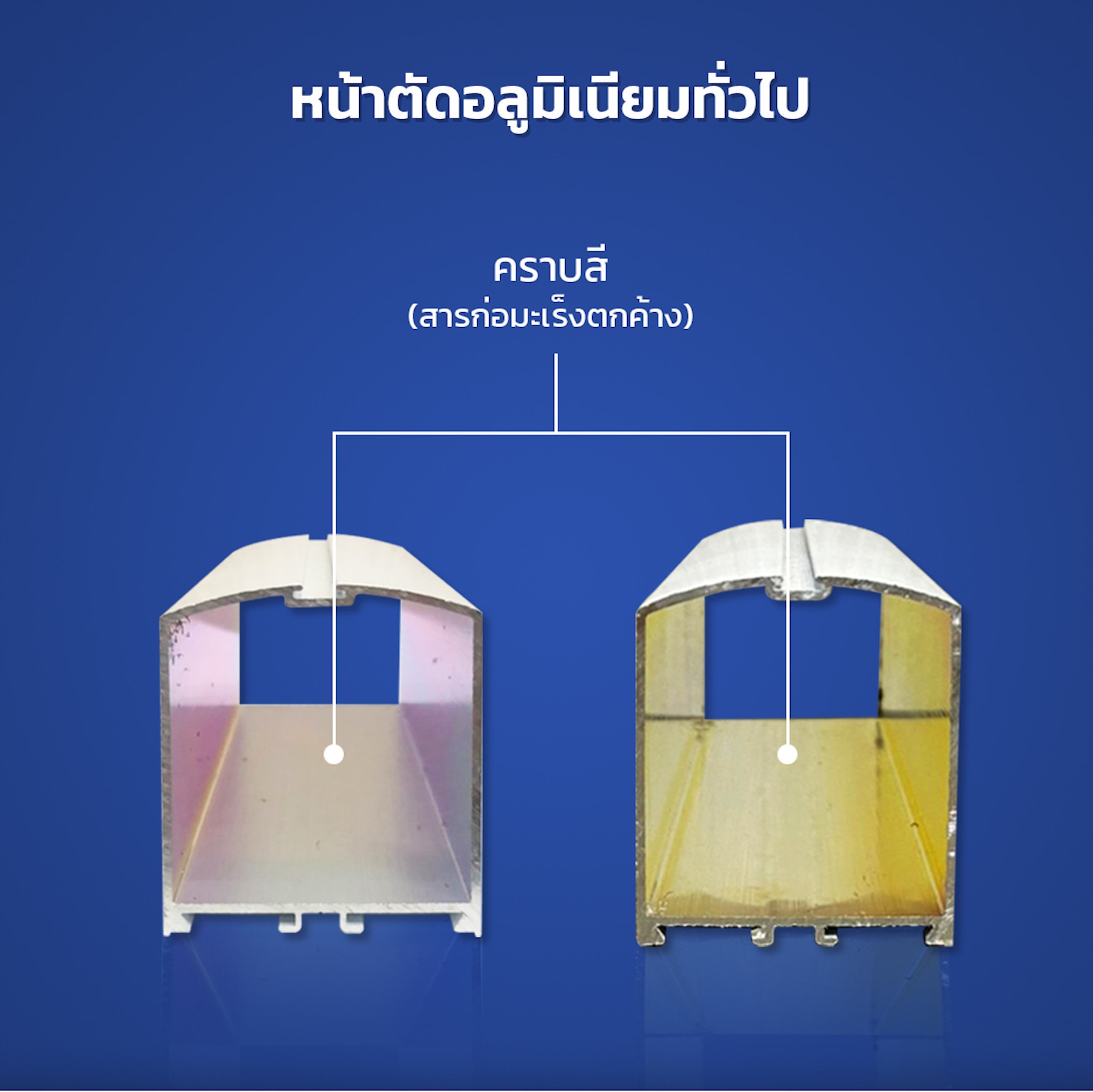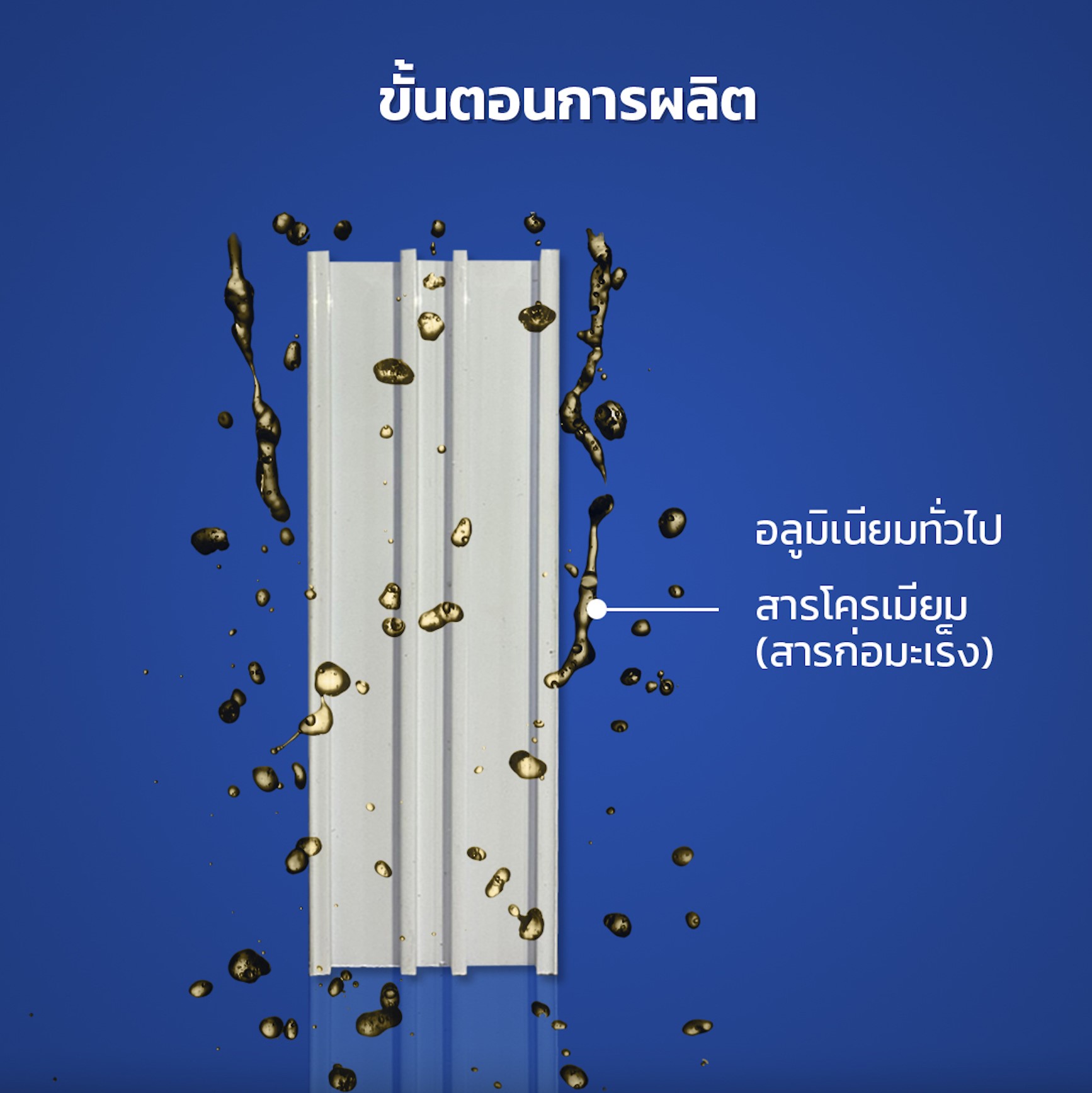 การพัฒนาที่ยั่งยืน นวัตกรรมปลอดสารก่อมะเร็ง ไทยเม็ททอลฯ เลือกใช้นวัตกรรมปลอดสารก่อมะเร็งในกระบวนการผลิต ผลิตภัณฑ์จากไทยเม็ททอลจึงมีความปลอดภัย ปราศจากสารก่อมะเร็ง 100% และเป็นมิตรต่อสิ่งแวดล้อม เราจึงเป็นอลูมิเนียมแบรนด์แรกในไทยที่มีนวัตกรรมสินค้าปลอดสารก่อมะเร็ง ด้วยความใส่ใจในสุขอนามัยของพนักงานและลูกค้า ตามพันธกิจองค์กรที่มีความรับผิดชอบต่อสิ่งแวดล้อม ชุมชน และสังคม ในกระบวนการทำสีอลูมิเนียมทั่วไป มักใช้สารกลุ่มโครเมี่ยม ในการเพิ่มความทนทานของการยึดเกาะสีกับอลูมิเนียม อย่างไรก็ตาม สํานักงานปกป้องสิ่งแวดล้อมสหรัฐอเมริกา (U.S. Environmental Protection Agency : EPA) ได้จัดให้สารกลุ่มโครเมี่ยม อยู่ในกลุ่มสารก่อมะเร็งในมนุษย์ ซึ่งมีความเป็นพิษสูงต่อผิวหนังและทางเดินหายใจ มีอาการระคายเคือง เป็นโรคหอบหืด ทำให้ปอดถูกทำลาย ไทยเม็ททอลเลือกใช้สาร “เซอร์โคเนียม” แทนสารกลุ่มโครเมี่ยม ผลิตภัณฑ์จากไทยเม็ททอลจึงปลอดภัย ปราศจากสารก่อมะเร็ง 100% และเป็นมิตรต่อสิ่งแวดล้อม อลูมิเนียมทั่วไปในท้องตลาดมักใช้สารโครม ซึ่งเป็นสารก่อมะเร็งในขั้นตอนการผลิต อลูมิเนียมจากไทยเม็ททอล ใช้สารเซอร์โคเนียม ซึ่งมีความปลอดภัย ไร้สารก่อมะเร็ง อลูมิเนียมทั่วไปในท้องตลาด มักมีคราบสีจากสารโครมซึ่งเป็นอันตราย อลูมิเนียมจากไทยเม็ททอล ไม่มีคราบสี ไม่มีสารพิษตกค้าง เส้นอลูมิเนียมโพรไฟล์จากไทยเม็ททอล ปราศจากสาร Hexavalent Chromium และสารอันตรายอื่นๆ ซึ่งเป็นสารก่อมะเร็ง ตามมาตรฐานการทดสอบ Rosh Directive 2011/65/EU จาก SGS (Thailand) Limited ผลทดสอบการตรวจหาสารก่อมะเร็ง Aluminium Test Report ปรึกษา สอบถามเพิ่มเติมได้ที่ contact@thaimetal.com เรามีทีมงานพร้อมให้บริการในทุกกลุ่มอุตสาหกรรม ติดต่อเรา